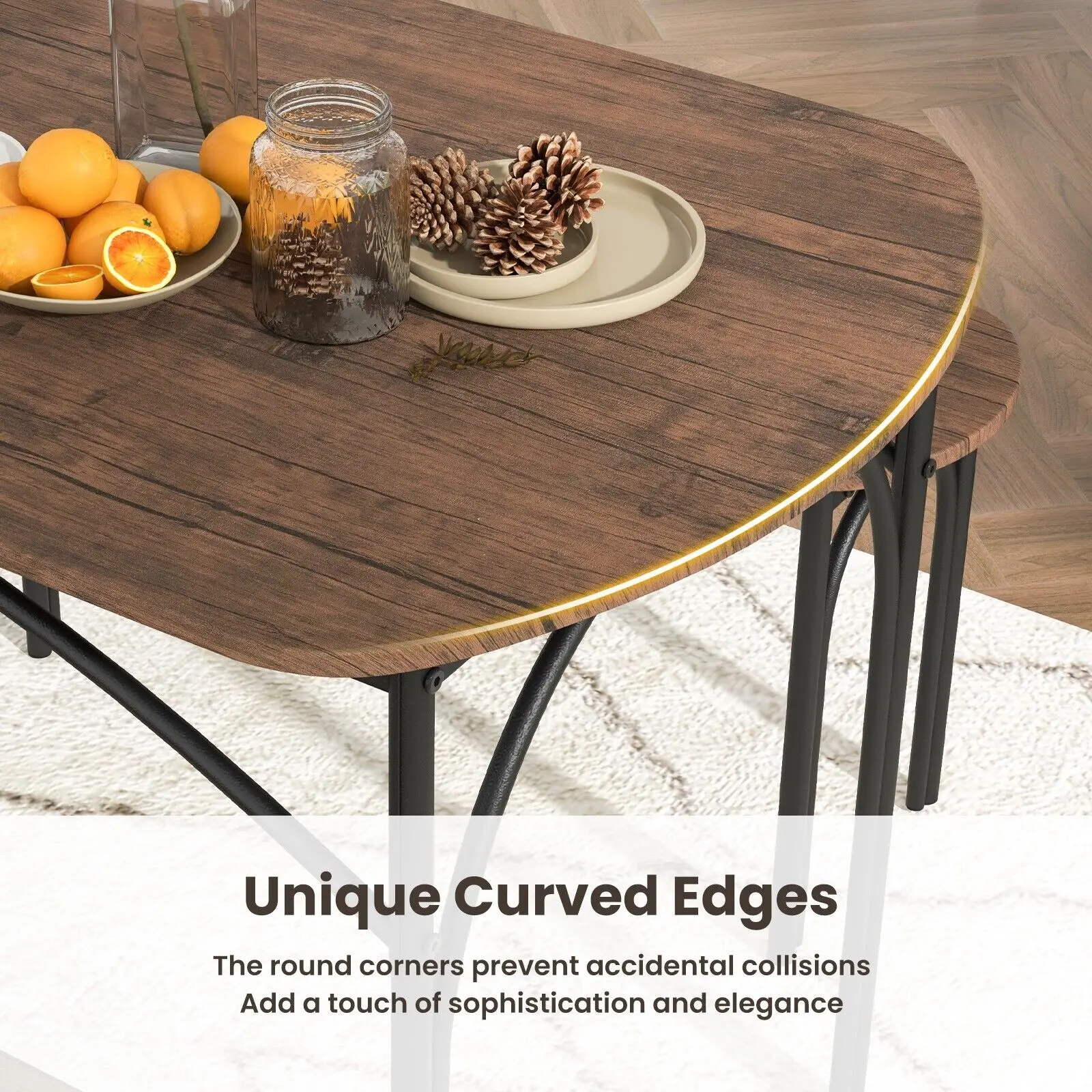 More Exquisite Details: The dining set showcases elegant arch support and unique curved edges, enhancing the overall stability while elevating the overall aesthetics of your living space. Additionally, the round corner design ensures safe use.