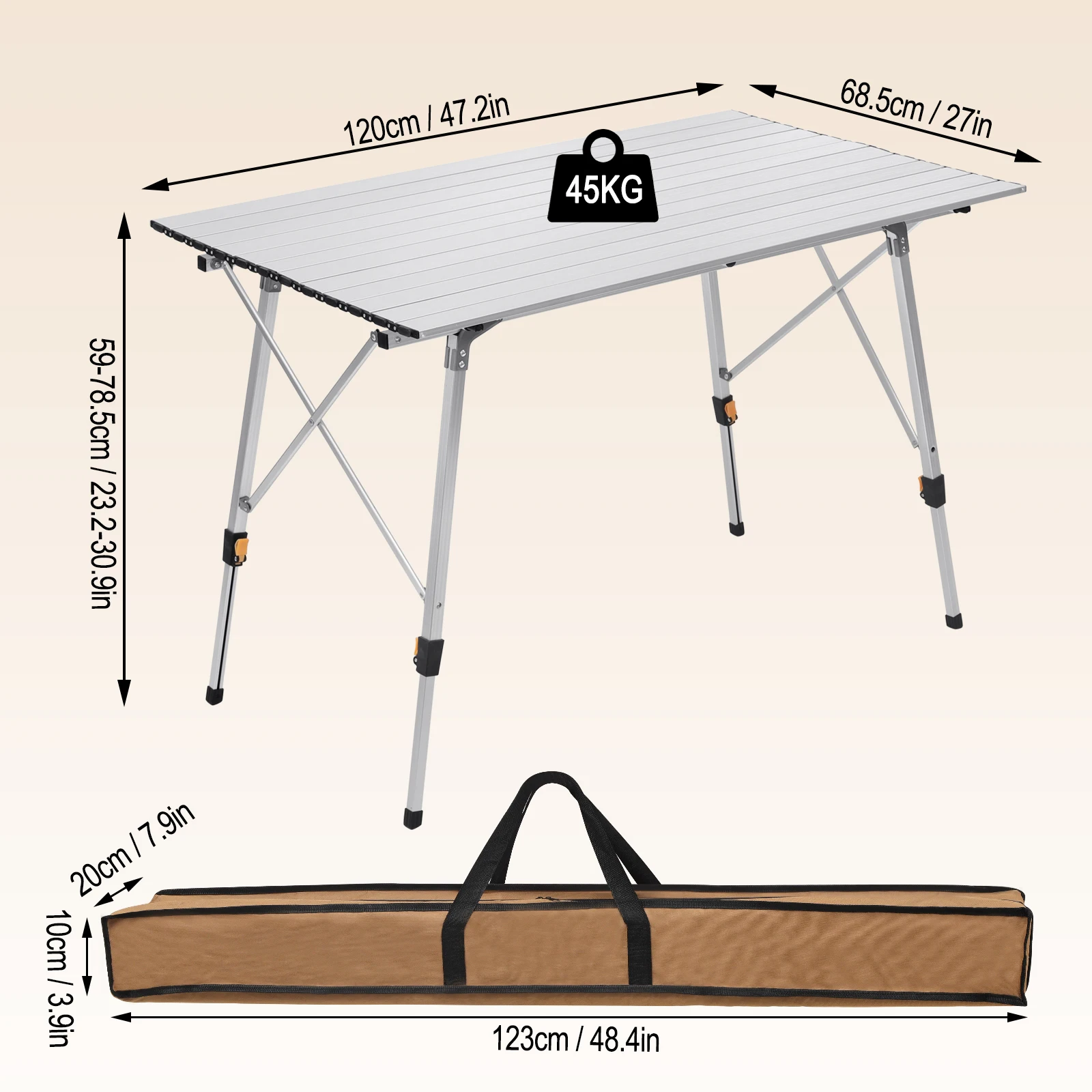 Aluminum Folding Travel Camping Table with Carry Bag Adjustable Height Outdoor Garden