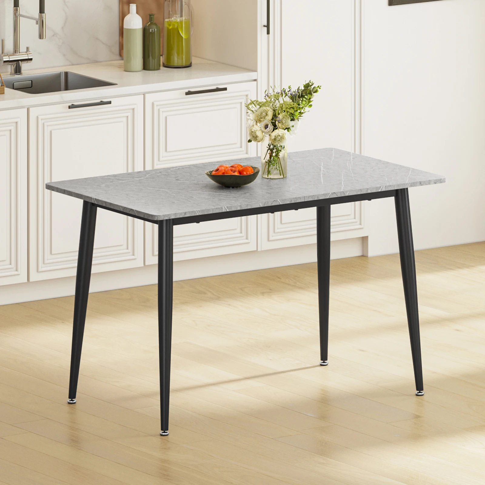 Dining Table, Modern Rectangular Kitchen Table with Marble Effect Top and Metal Legs