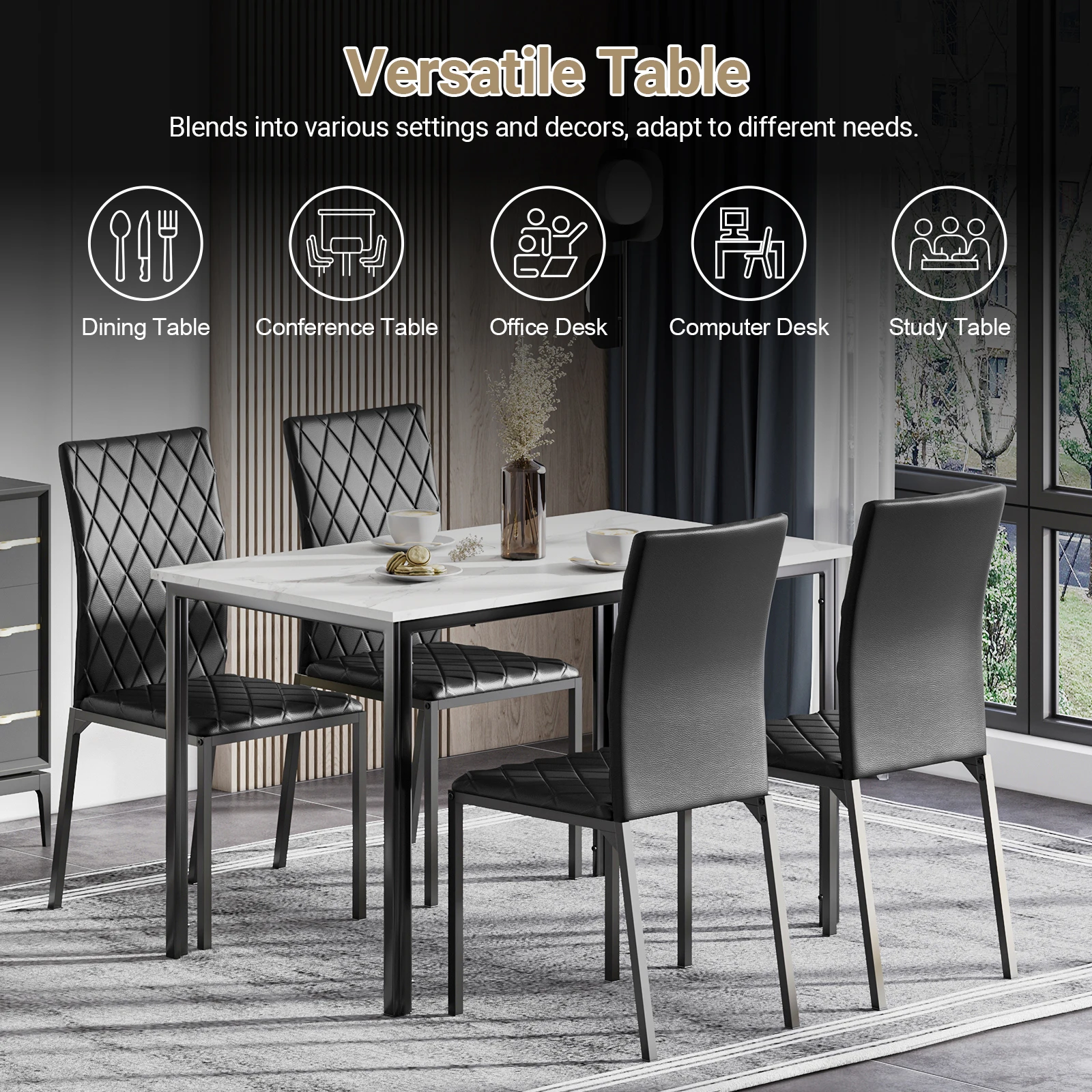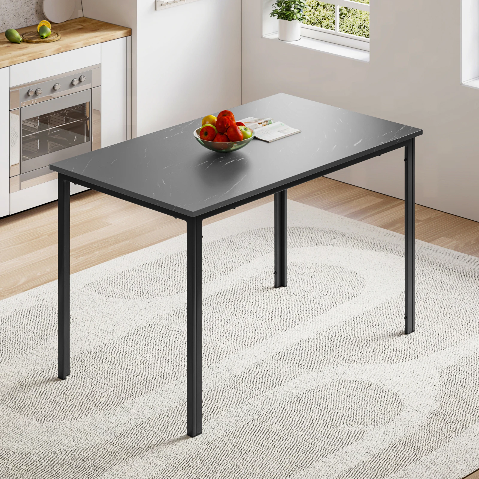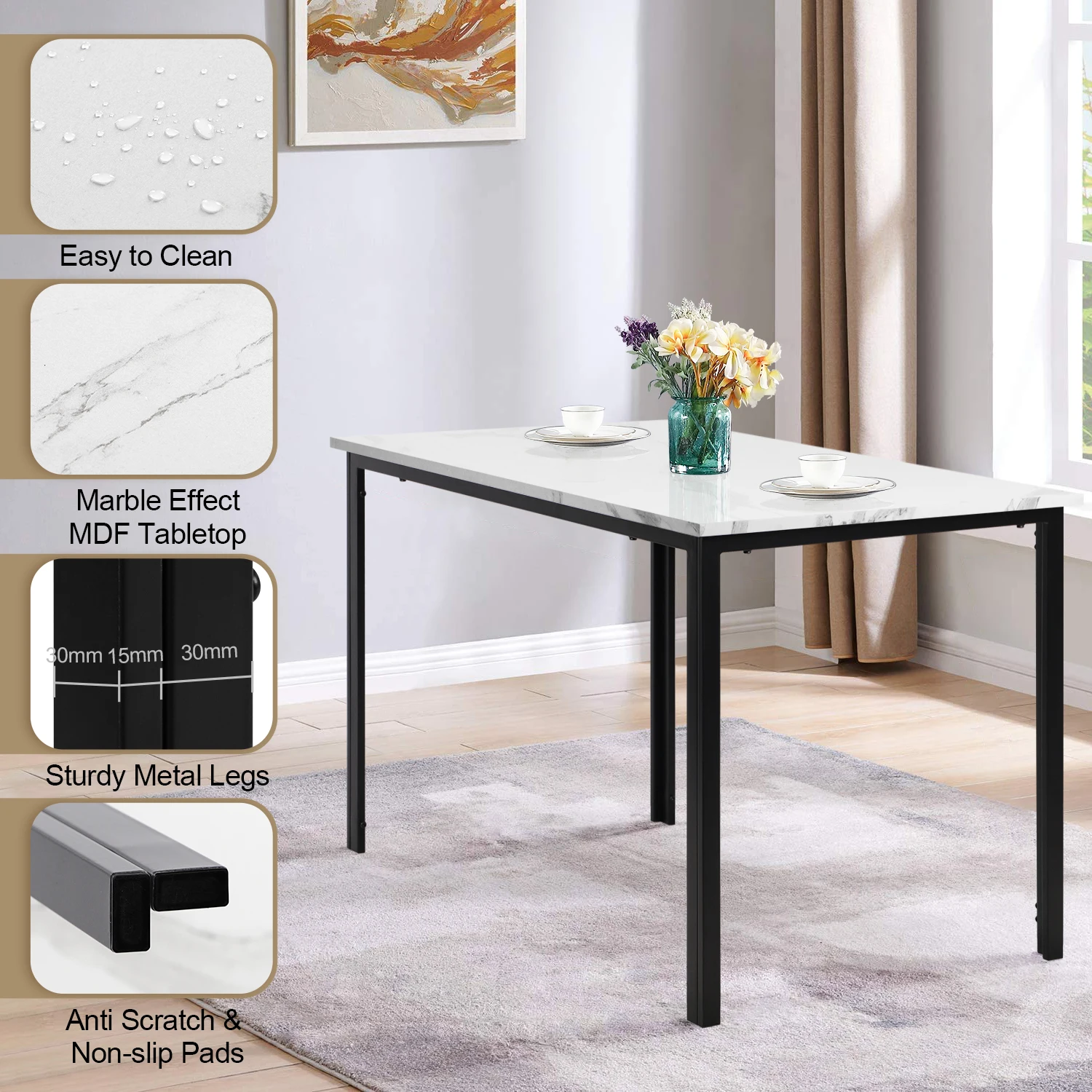 Be the first to review “Dining Table, Modern Rectangular Kitchen Table with Marble Effect Top and Metal Legs” Cancel reply