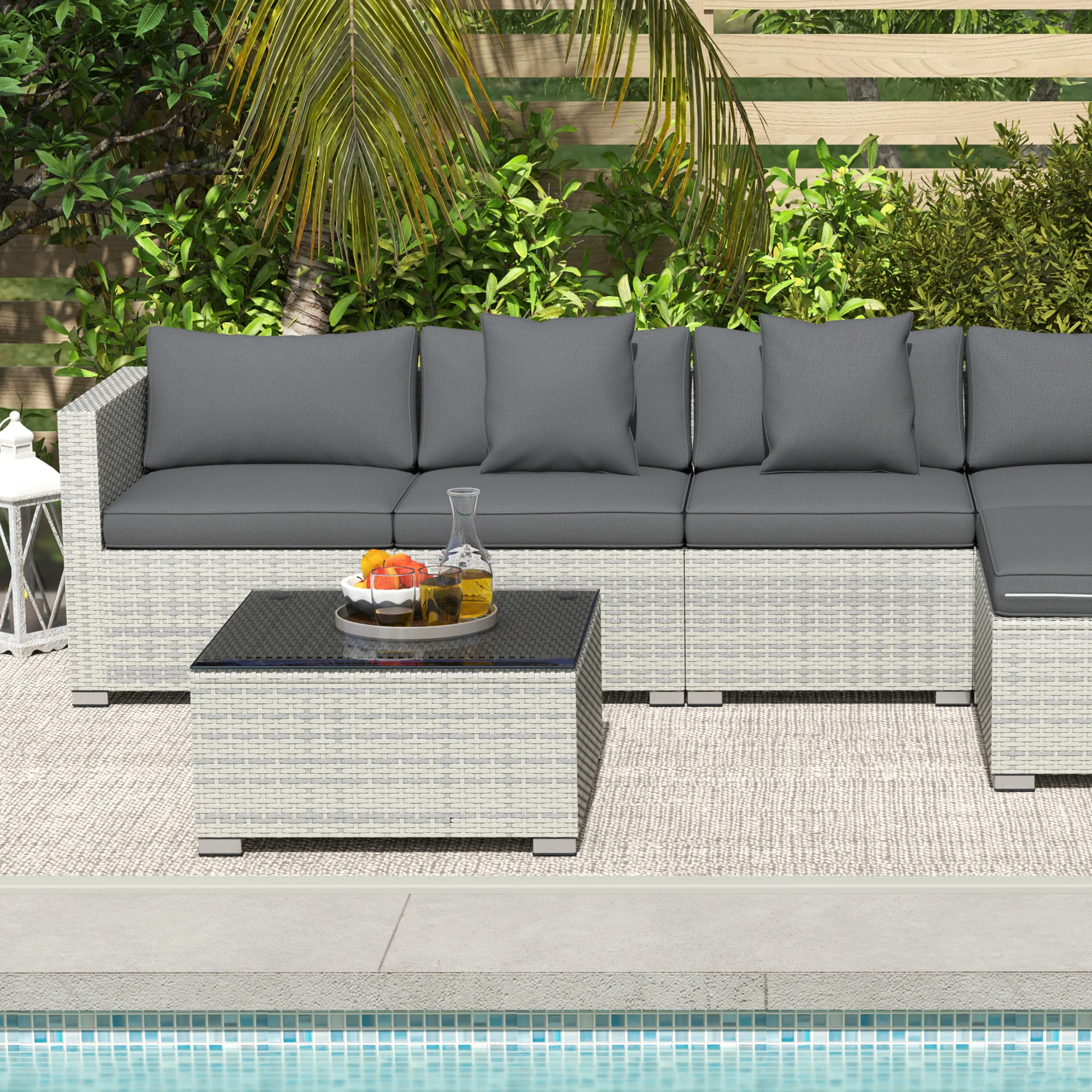 Outsunny 6 Pieces Rattan Furniture Set Garden Sofa Set Mixed Grey