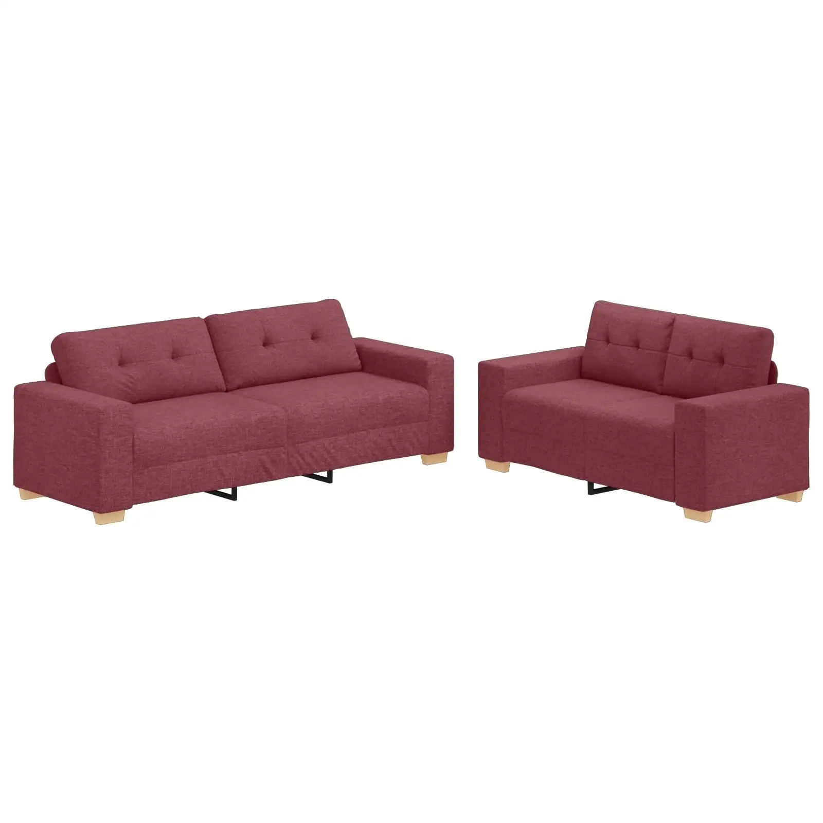 Stylish Wine Red 2 Piece Sofa Set with Soft Cushions Cozy Living Room Furniture